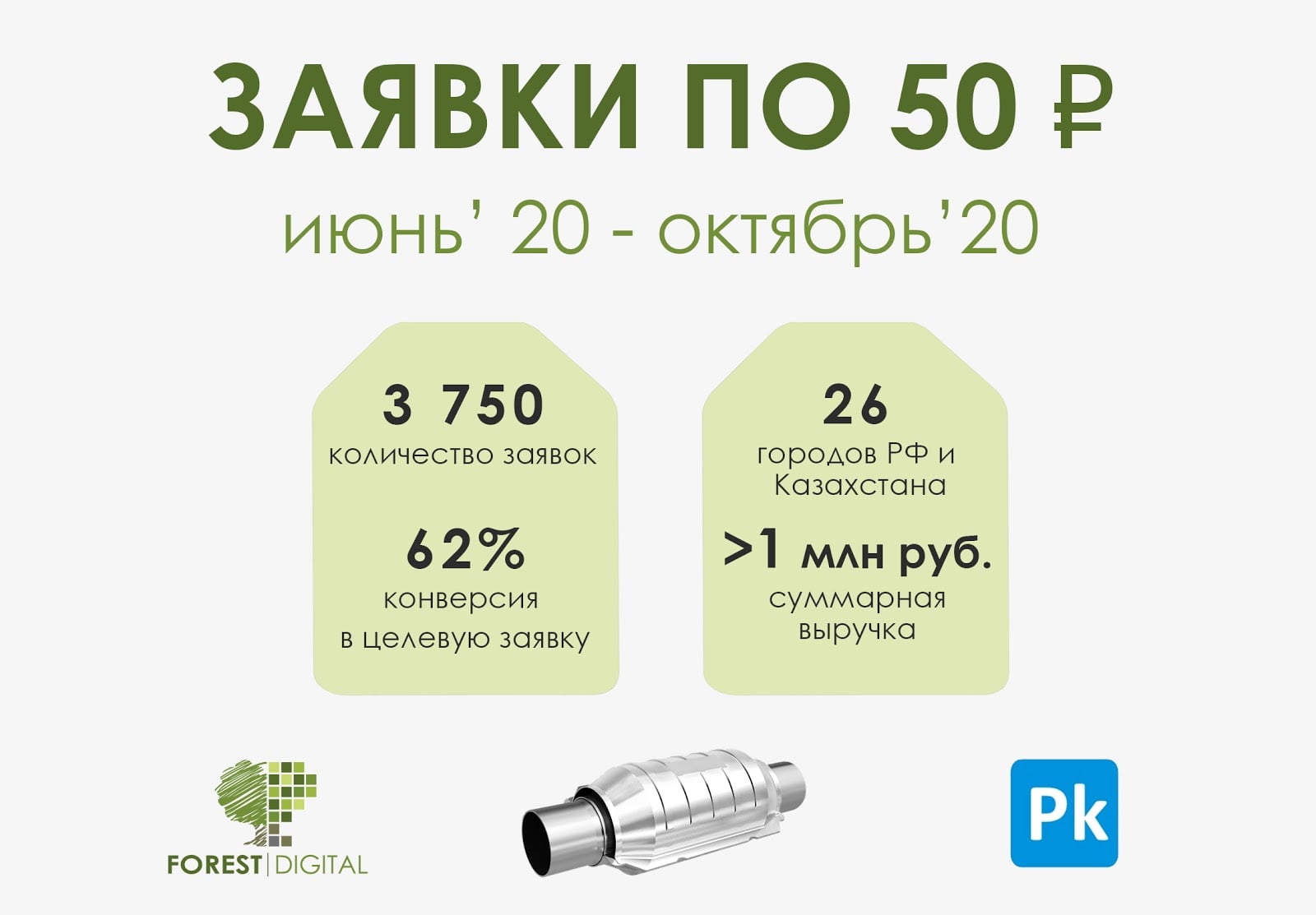 Результаты по автокатализаторам весьма впечатлили клиента, поэтому решено было сразу подключить рекламу в дополнительных городах России, а также запустить отдельную кампанию для Казахстана. Однако, по пламегасителям цена заявки не проходила минимальные расчеты на окупаемость. Поэтому мы решили сосредоточиться только на катализаторах, учитывая что пламегасители клиент все равно будет предлагать всем клиентам, которые будут сдавать катализаторы. Т а ким образом, мы сможем сразу решать две задачи.