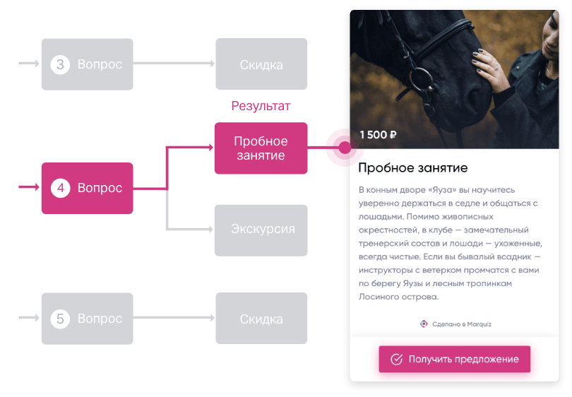 Для потребителя – с помощью нескольких вопросов в квизе помочь определиться с выбором и оставить свои контакты в менее стрессовом состоянии по сравнению с сайтом или лендингом.