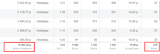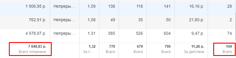 - Всего потрачено на тестовую рекламную кампанию: 7648,83 руб.