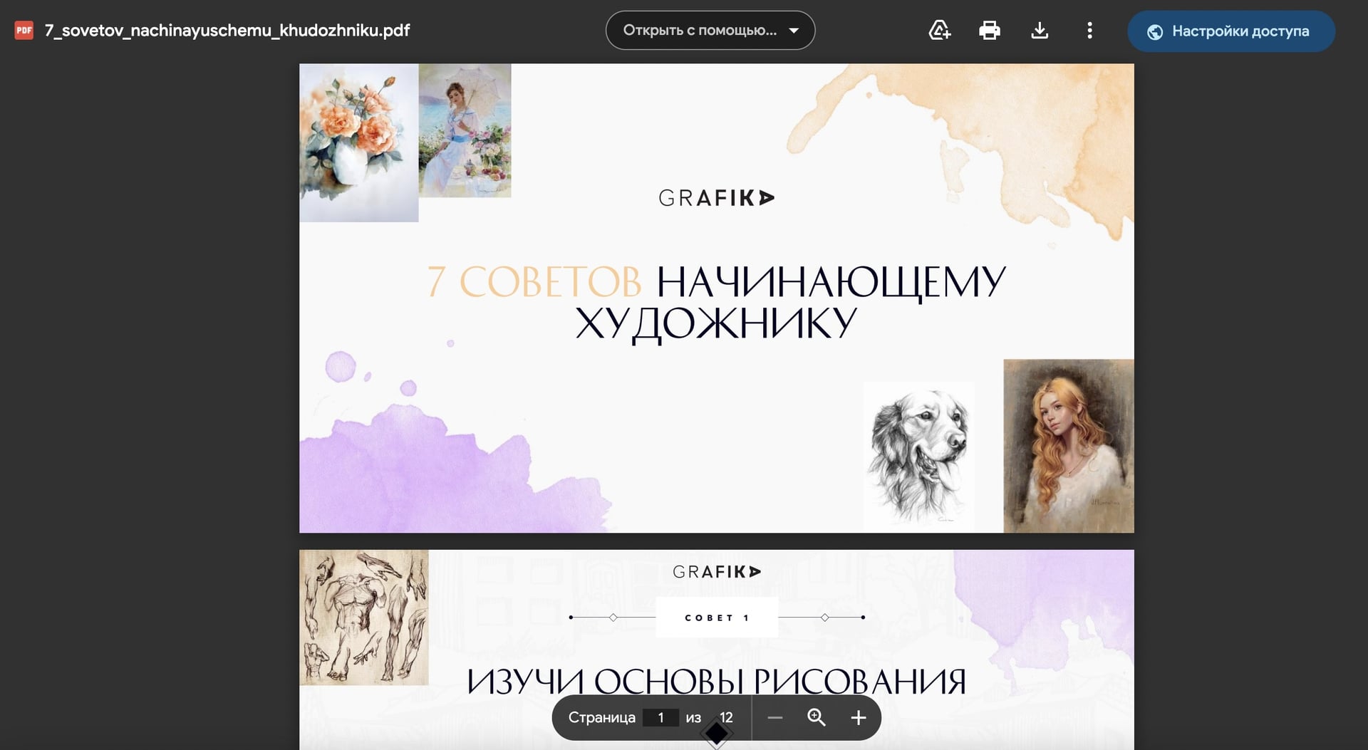 Вторым бонусом к бесплатному занятию идёт PDF-файл «7 советов начинающему художнику», который можно скачать по ссылке: