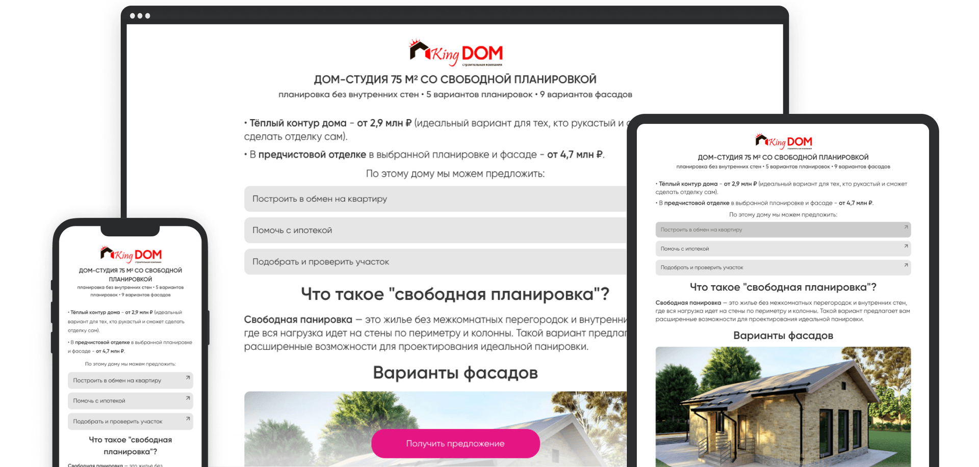 Компания KingDOM* с вариантом Marquiz Pages для загородного дома-студии*