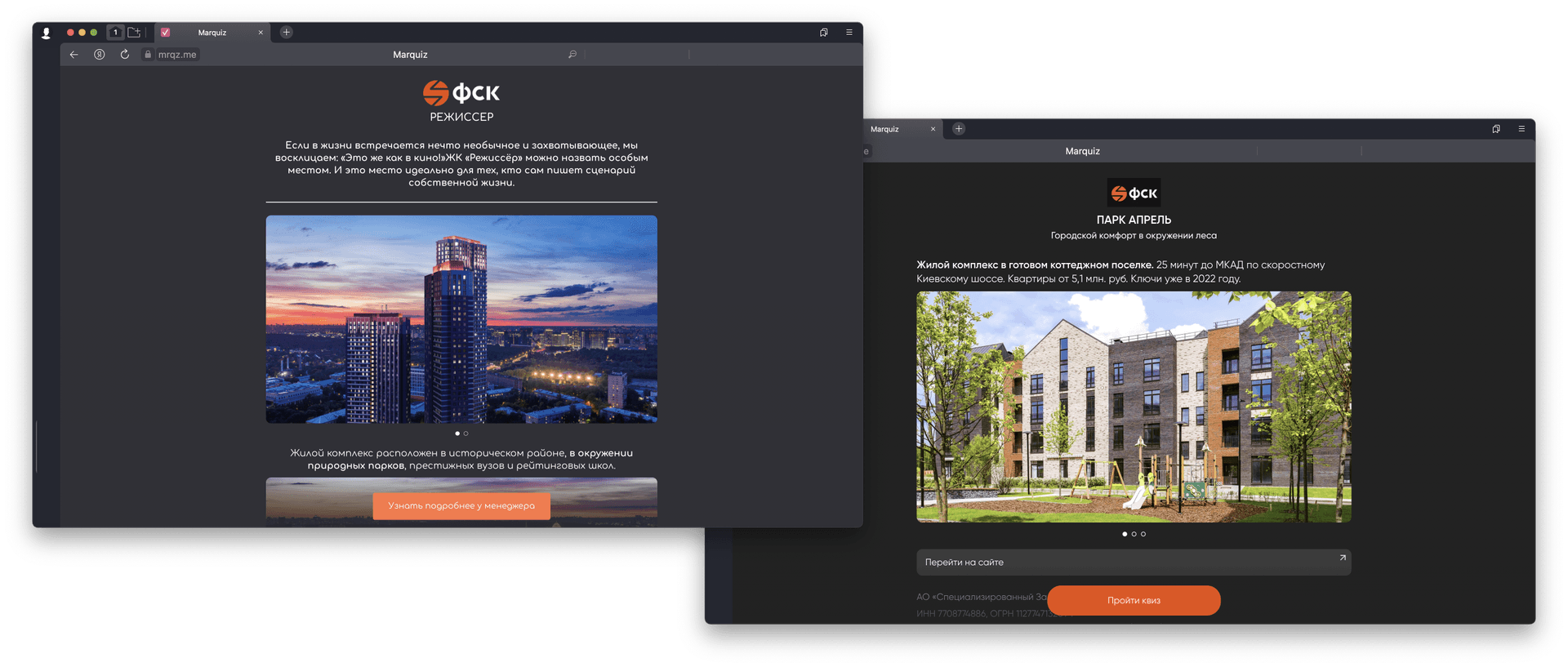 Компания ФСК с серией Marquiz Pages для ЖК «Режиссёр» и ЖК «Апрель»