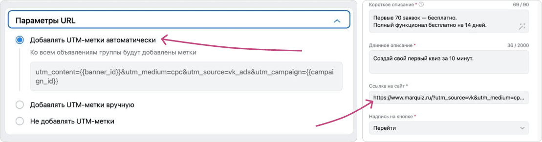 Добавляем UTM-метки для отслеживания эффективности кампании.