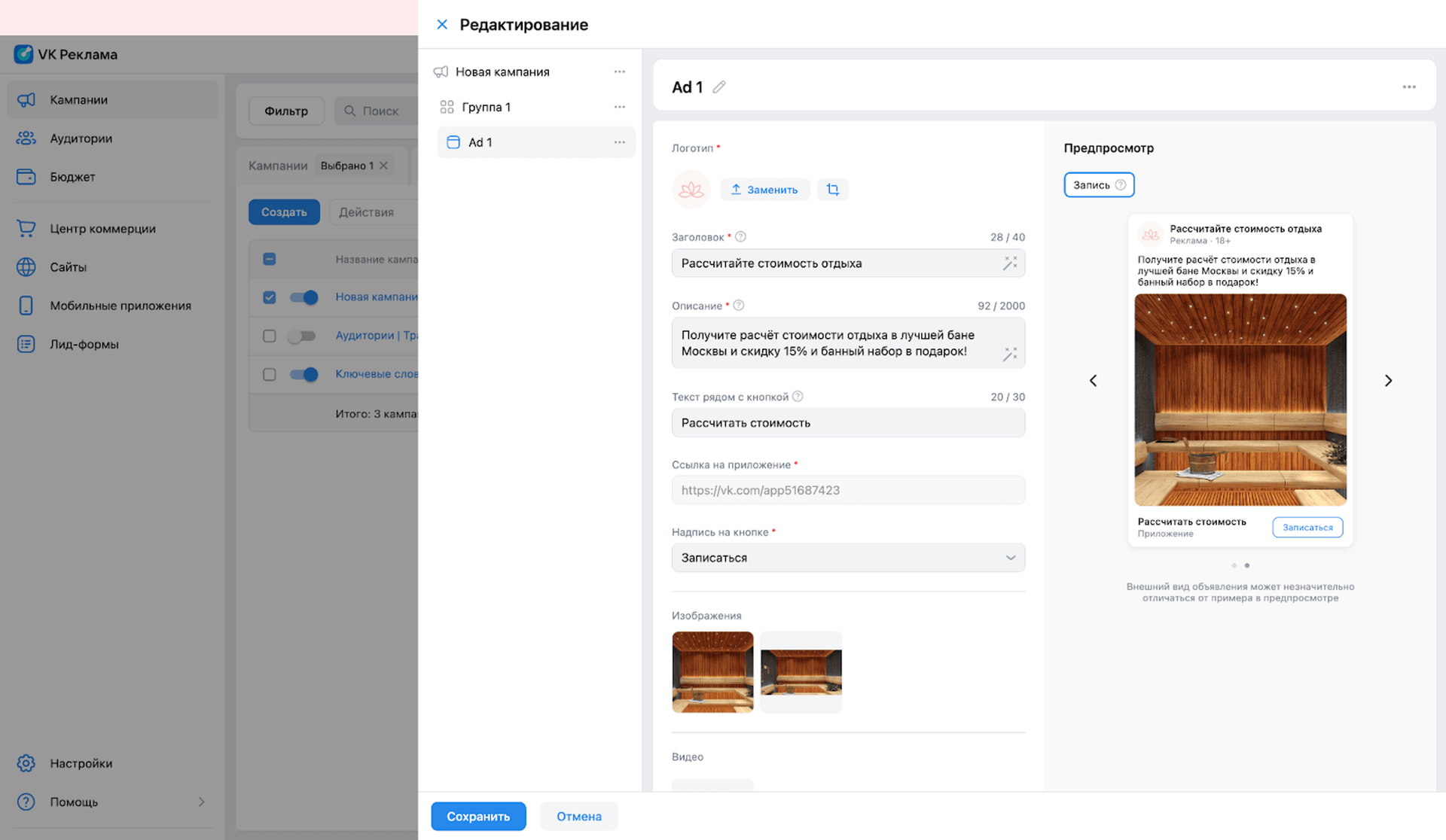 Последний шаг — рекламное объявление, креатив. Текст, изображения, видео и другие элементы, которые подчеркнут преимущества продукта или услуги.
