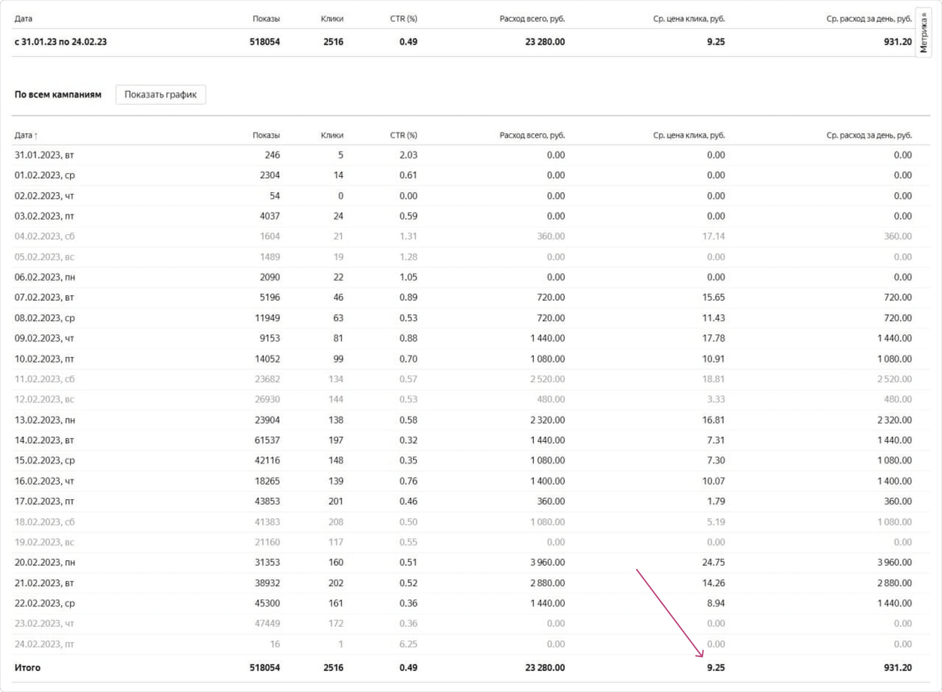 В контекстной рекламе использовали поисковый Яндекс Директ и РСЯ. На второй месяц продвижения удалось вручную настроить так, что стоимость клика (СРС) была меньше 10 рублей: