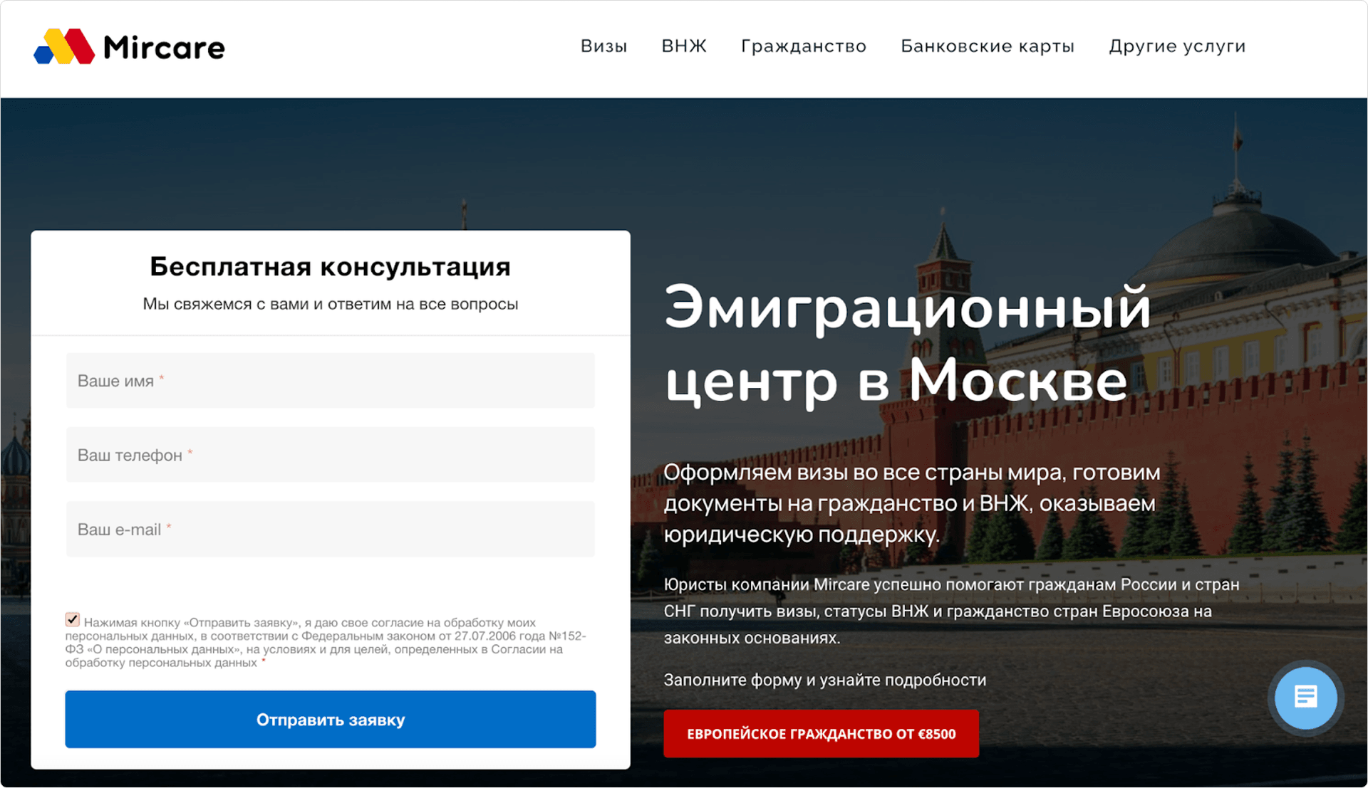 Здесь же на лендинге сразу обозначили примерную стоимость услуги, чтобы отсеять нецелевых лидов. Если бы это был просто вопрос про бюджет в квизе, то на этом этапе нецелевые тоже могли бы уйти, но с МР мы сегментируем посетителей раньше.