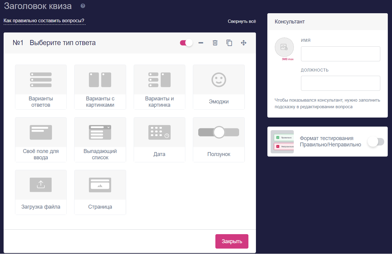 В квизе уже есть 10 типов вопросов — выбирайте подходящие