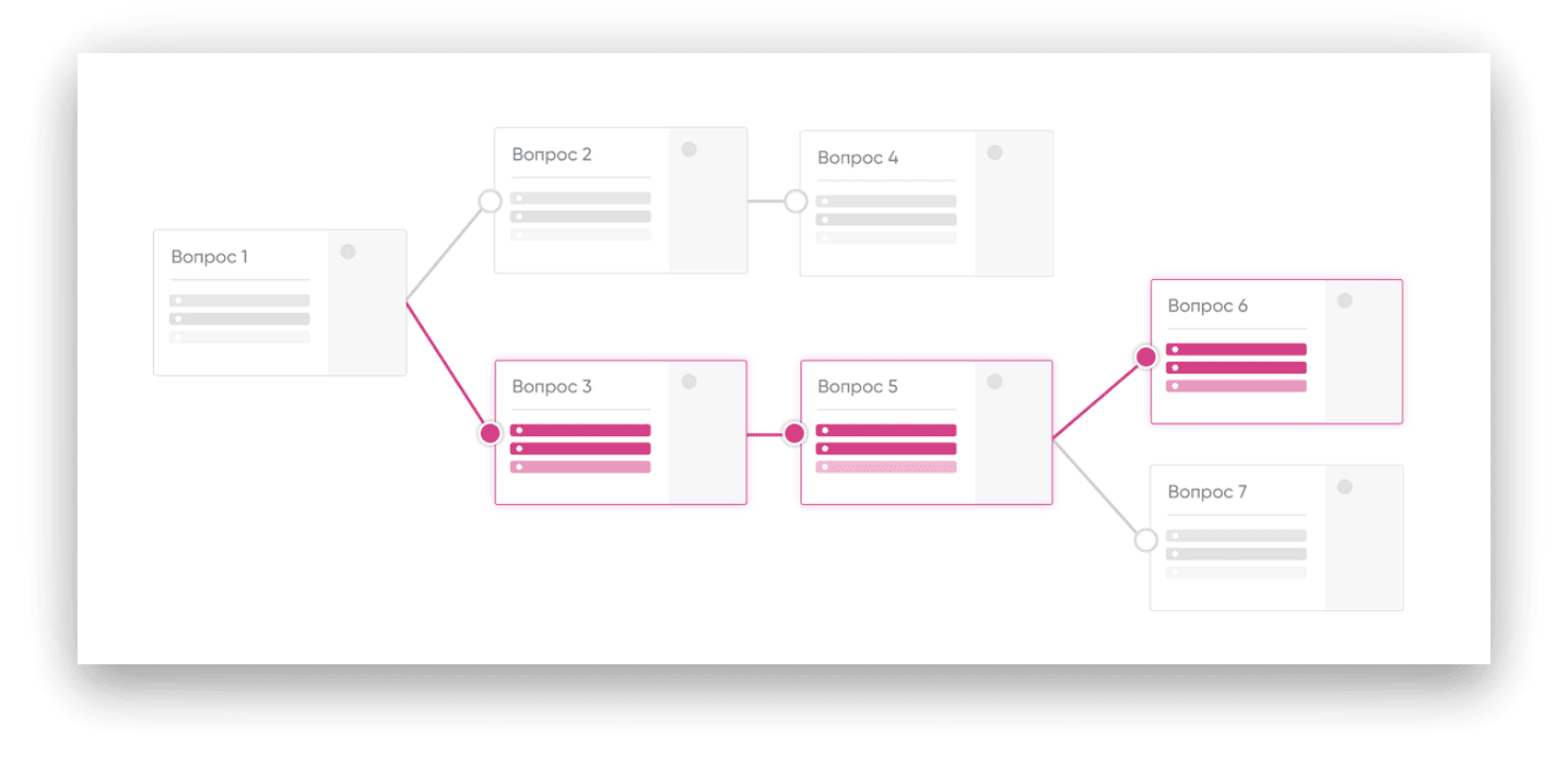 Задавайте вопросы в зависимости от ответа. Вы можете прямо в конструкторе продумать логику вопросов и ответов. То есть каждый следующий вопрос будет зависеть от ответа на предыдущий.
