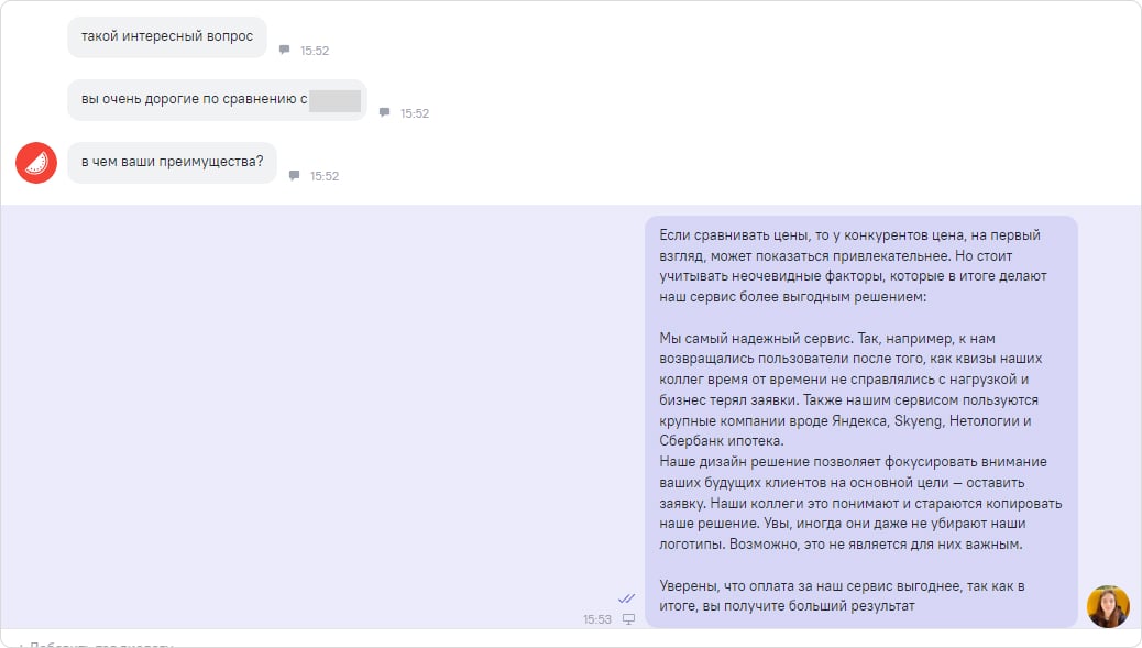 Пример отработки возражений от менеджера службы поддержки Marquiz. Классический вопрос «Почему так дорого?»