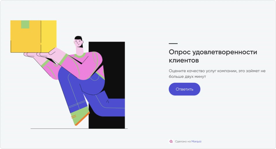 Также продвинуть клиента к сделке могут квизы. Если клиент ещё сомневается, но уже заинтересовался продуктом, можно предложить ему поделиться своим мнением через интерактивный квиз и просто оставить заявку.
