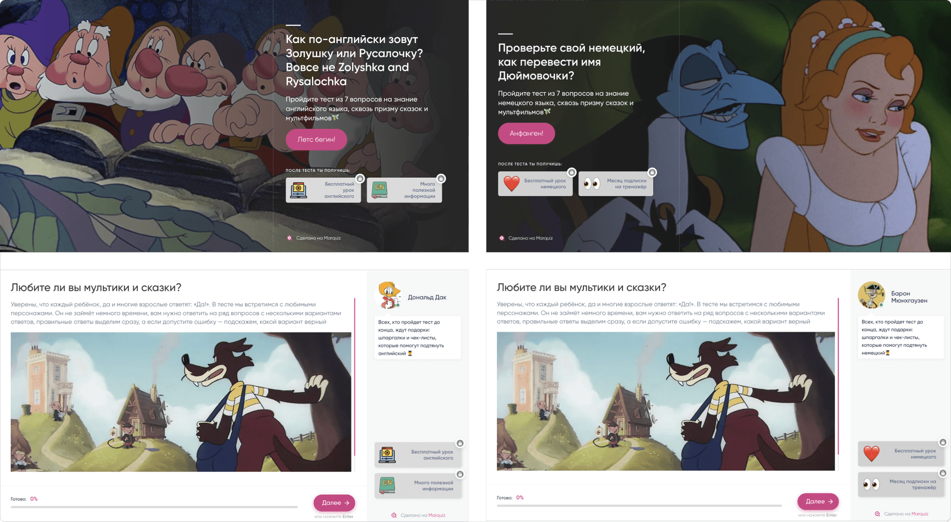 Найдите 8 отличий:) Был тест на английский, а стал — на немецкий, и консультант Дональд Дак превратился в барона Мюнхгаузена