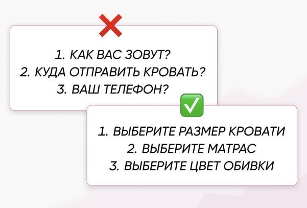 Квиз создан для того, чтобы помогать клиенту сделать выбор. За счёт того, что вы снимаете с него эту боль — лидов становится больше. Но если спрашивать что попало, то и результат будет соответствующий.