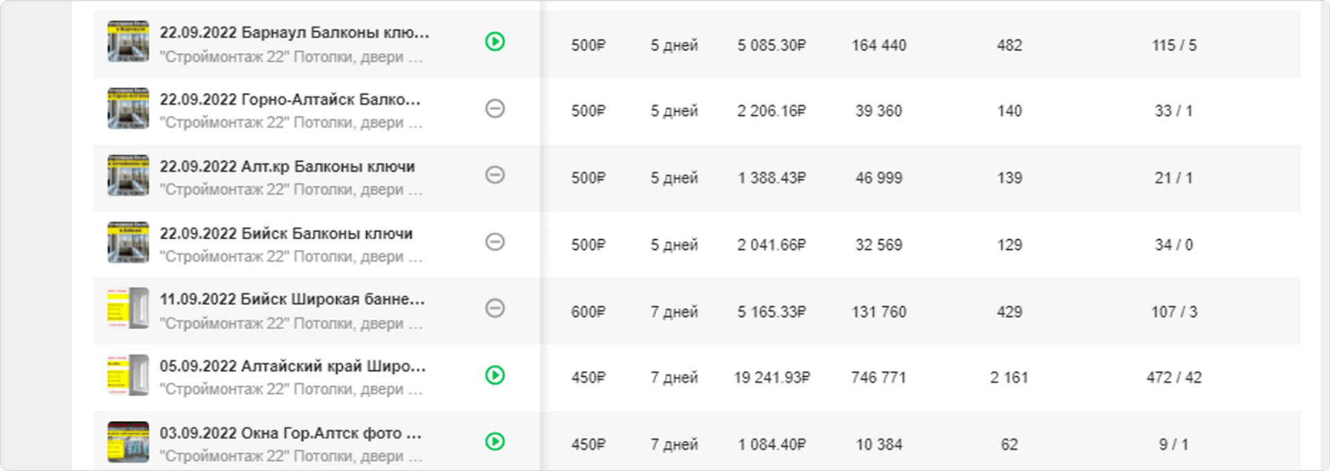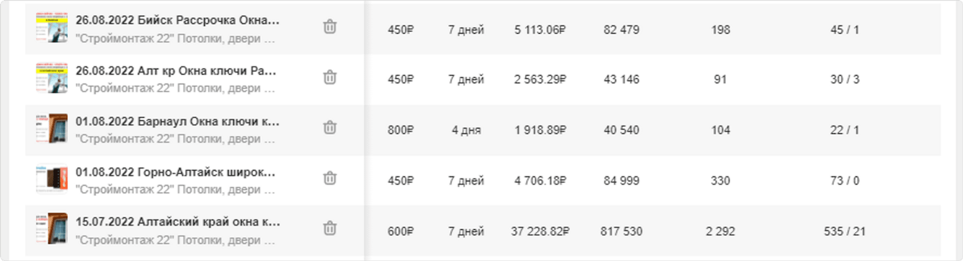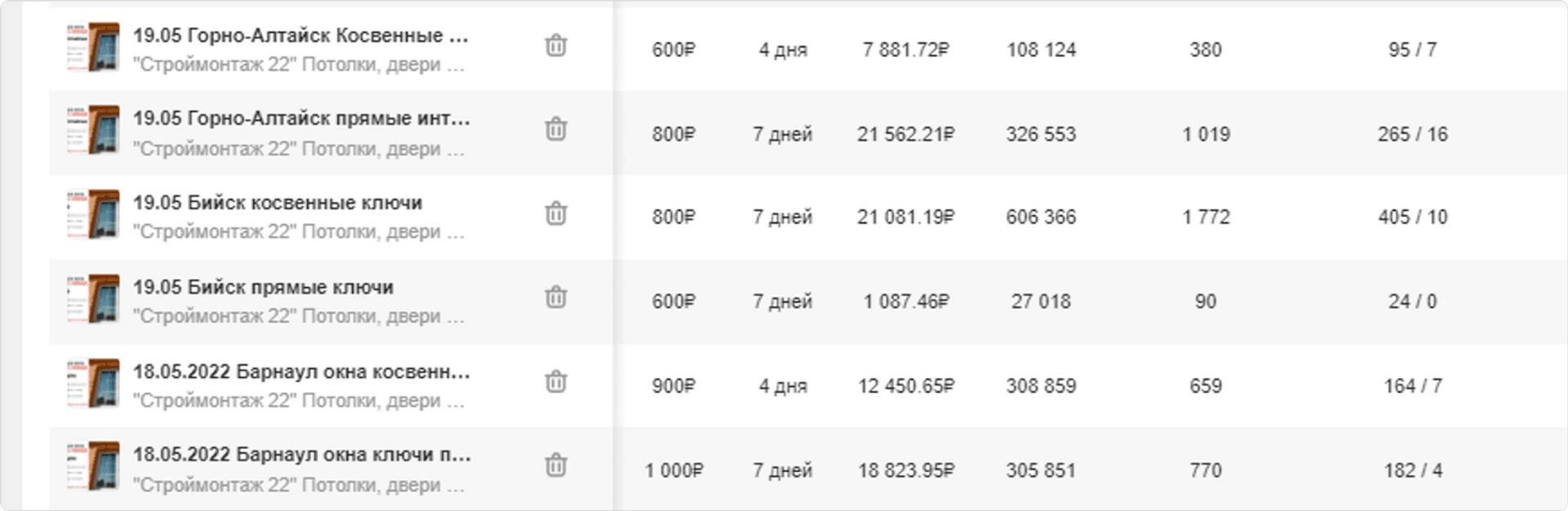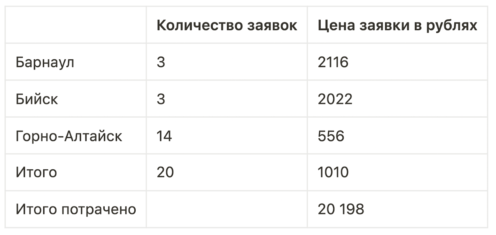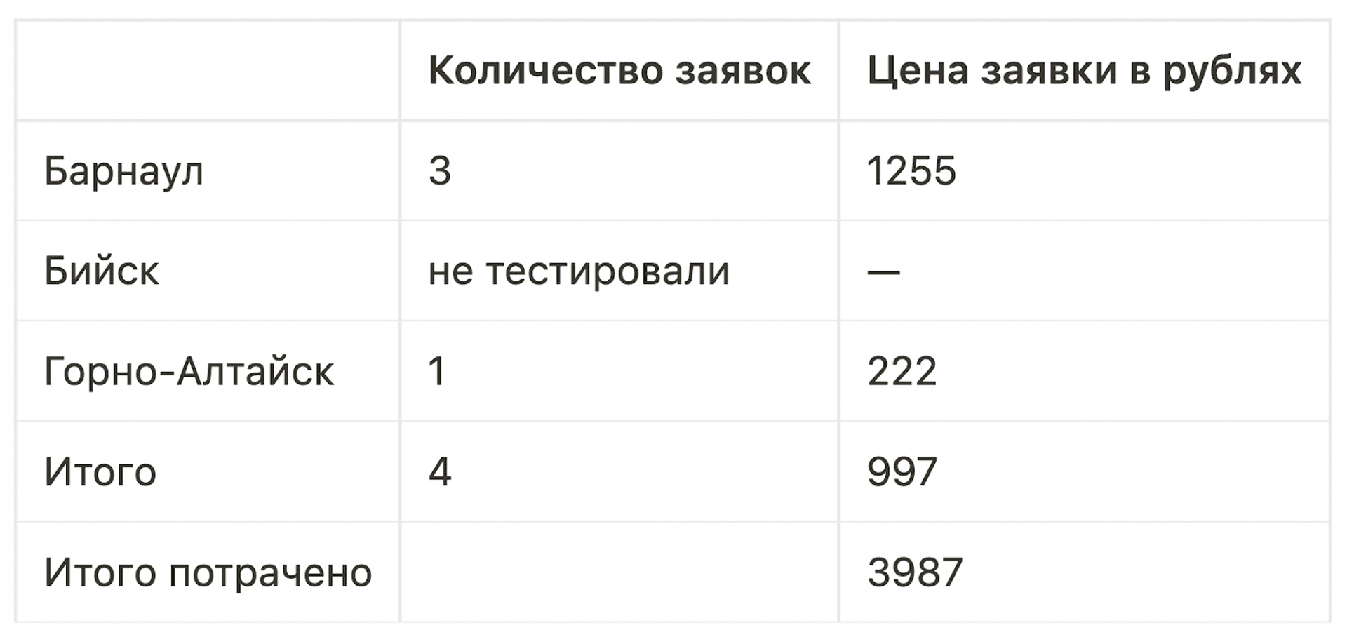 За следующие полгода работы с клиентом, мы запустили более 40 гипотез, всего за весь период кампании их было 70. Смотрели, откуда приходит больше заявок по приемлемой цене.