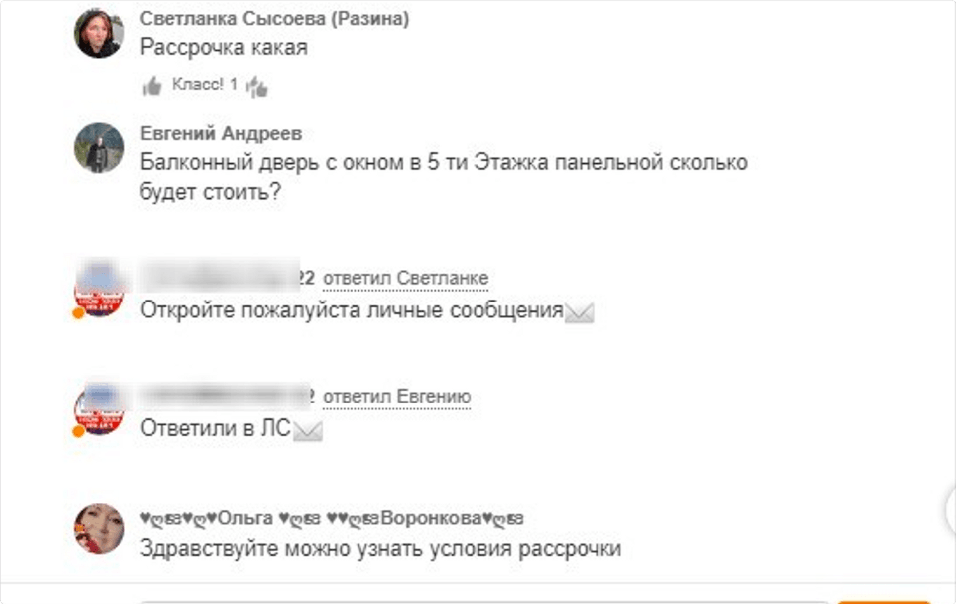 Помимо прямых заявок от квиза, клиент получил дополнительный трафик в соцсети ВК и ОК. Люди подписывались на сообщество клиента, оставляли комментарии под рекламными постами. Комментарии и сообщения не с рекламных постов мы не отслеживали, приводим сухую статистику из рекламного кабинета.