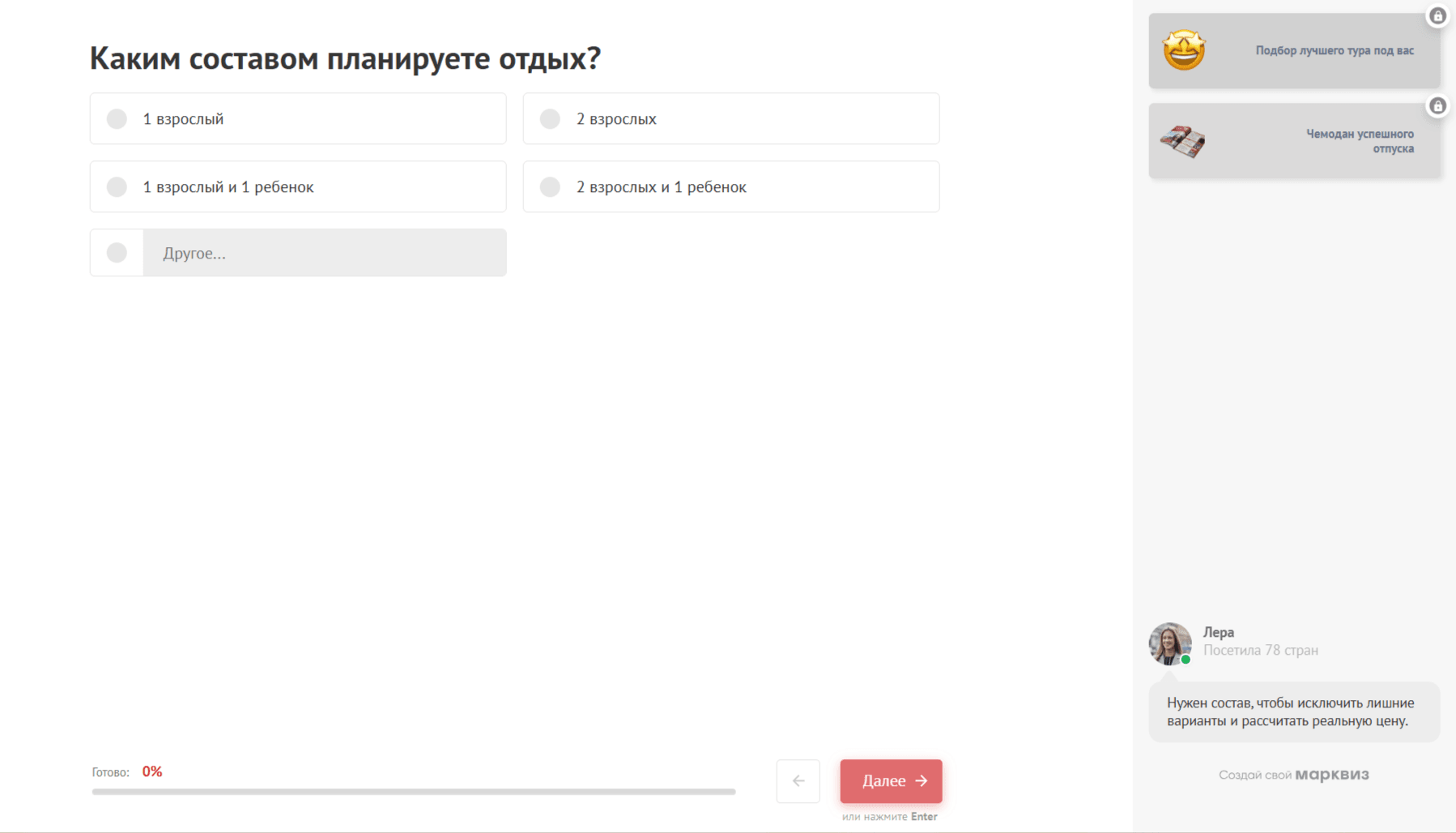 С 2018 года внедрил более 100 конверсионных квизов. Каждому клиенту подбираю максимально эффективную связку «посадочная + рекламный канал» для лидогенерации в его нише: контекстная реклама, таргет, посевы и так далее