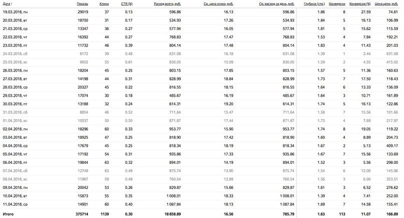 Рекламу крутили 28 дней и вот какие результаты мы получили: