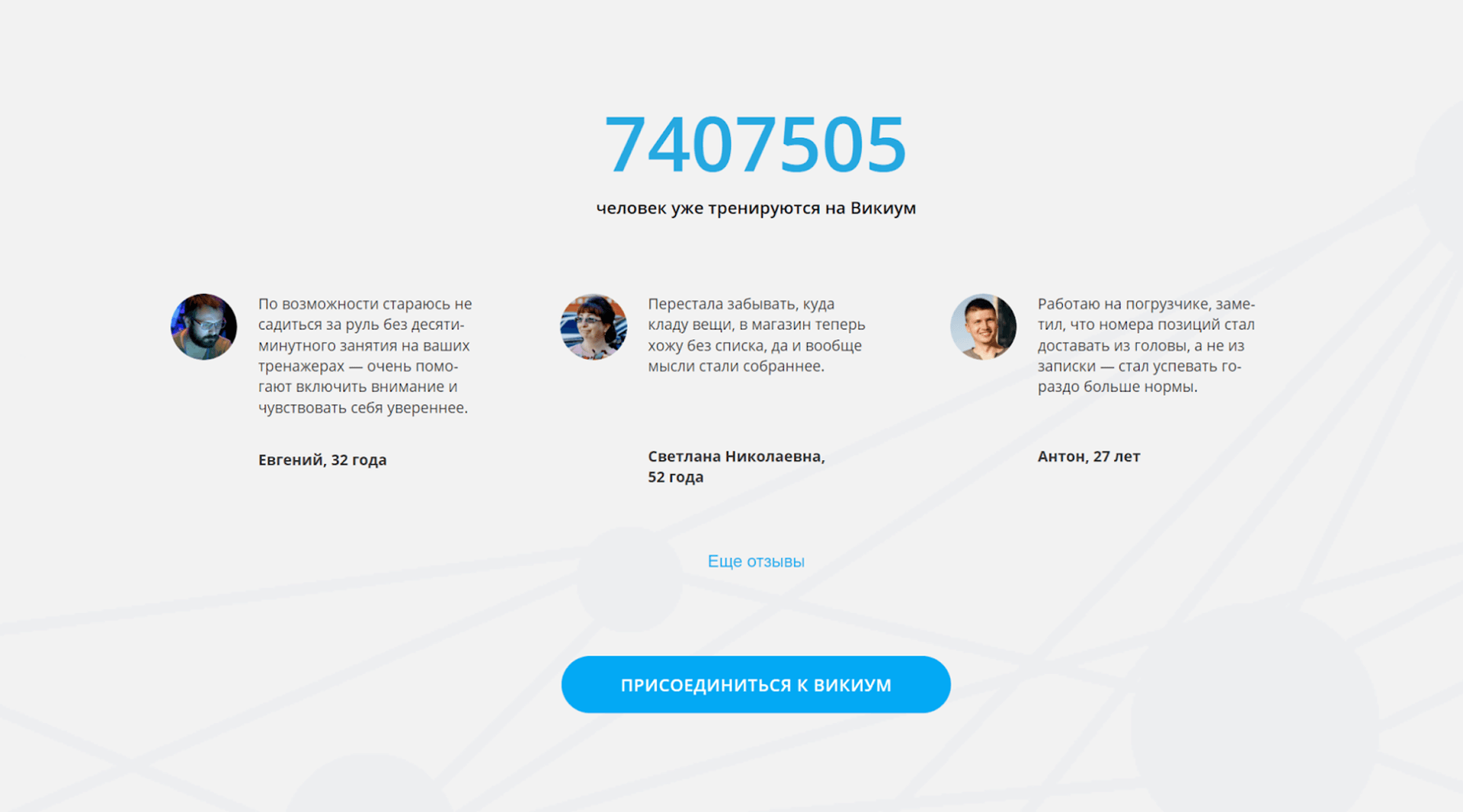 Пример: сервис тренировок для мозга Викиум использует социальное доказательство