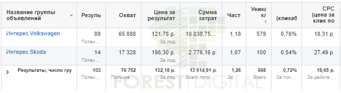 - и отдельно интересующиеся автомобилями Volkswagen. (Так как это один концерн, и по ценовому сегменту они схожи, у нас появилась гипотеза, что мы как раз сможем попасть в нужную аудиторию).