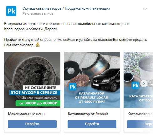 *Пример креатива для скупки автокатализаторов