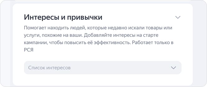 Автотаргетинг у Яндекса хороший, но можно помочь системе. Добавьте интересы, возраст, регион. Чем точнее — тем дешевле заявка.