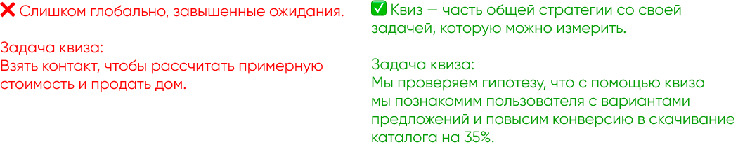 ✅ Мы выдвигаем гипотезу, как будет выстраиваться диалог с клиентом и с какими показателями нам поможет квиз. Цифры будут маркером эффективности квиза.